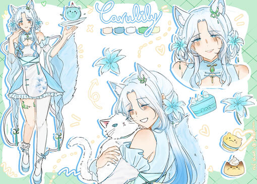 once known as xiao dou, a maid in the jade heavens. mocked for height sought out help from a soceror. sent to the mortal realms, but hit by a car. now named car, given powers to create desserts into cats. runs a cat cafe with her loavlies and lived happily ever after.